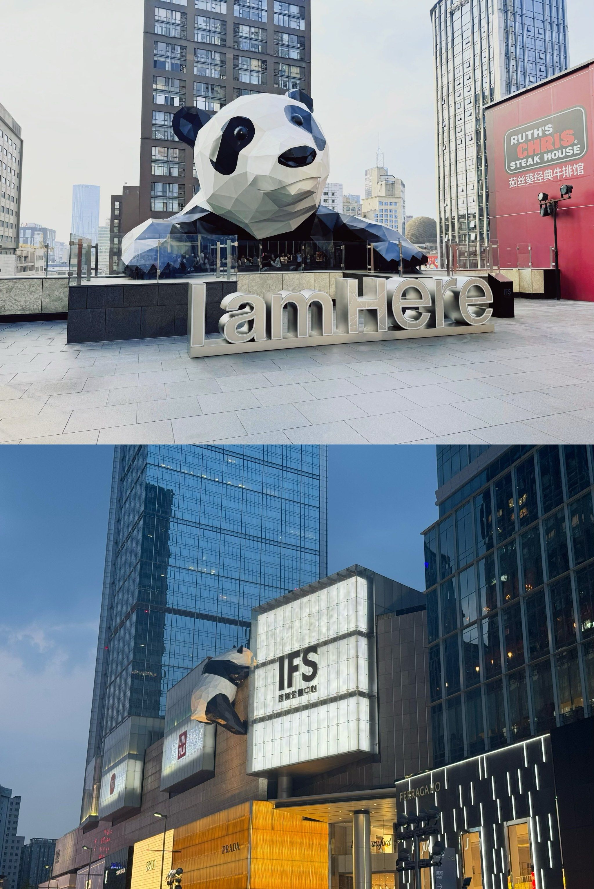 ● IFS (International Finance Square):ไฮไลต์: ห้างสรรพสินค้าขนาดใหญ่ที่มีประติมากรรมหมีแพนด้าปีนตึกเป็นสัญลักษณ์อันโดดเด่น
